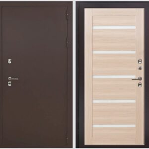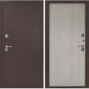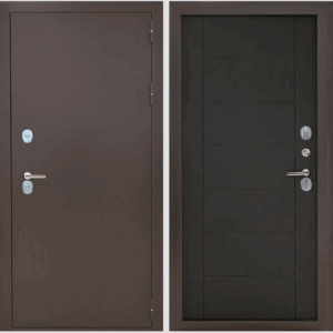 Кроме слоя утеплителя (базальтовая вата, пенопласт) предусмотрена еще термоизолирующая вставка из пробки с низким уровнем теплопроводности. Изоляционный пробковый слой полностью покрывает внутреннюю поверхность дверного полотна, отделяет его наружную часть от внутренней, чем разрывает «мостики холода». Кроме того, болты отделены от дверной конструкции полиамидными шайбами, которые не позволяют метизам передавать тепло от одной части короба к другой.