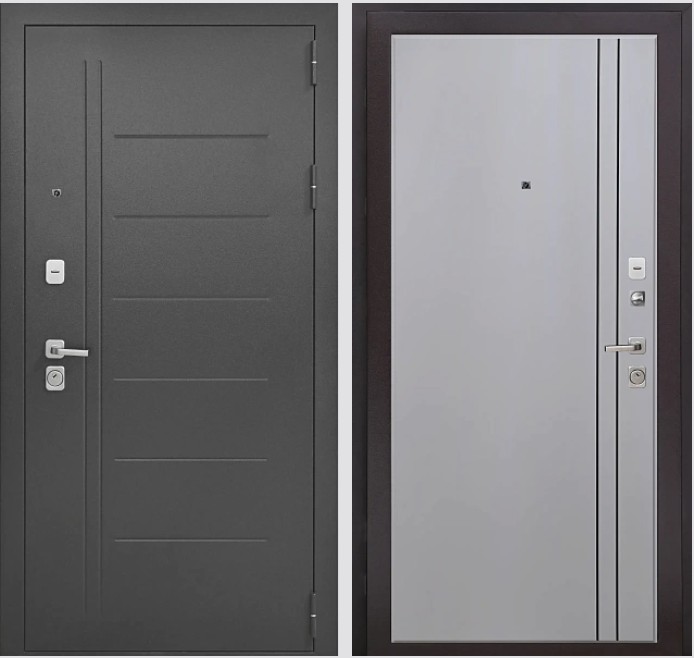 Комплектация:дверной глазок, ночная задвижка, порог из нержавеющей стали, фурнитура матовый хром прямоугольная, 17 серия, декоративные накладки с защитой от продувания, комплект ключей.