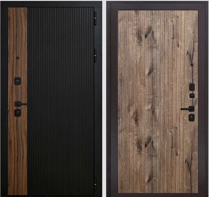 Внешняя отделка: комбинированная МДФ 10 мм ламинированная пленкой ПВХ «Черная шагрень»/ «Орех каньон коньяк»