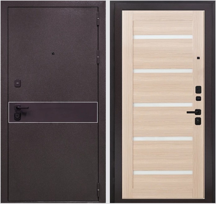 Комплектация: дверной глазок, ночная задвижка, фурнитура черная прямоугольная 17 серия, порог из нержавеющей стали, декоративные накладки с защитой от продувания, комплект ключей.