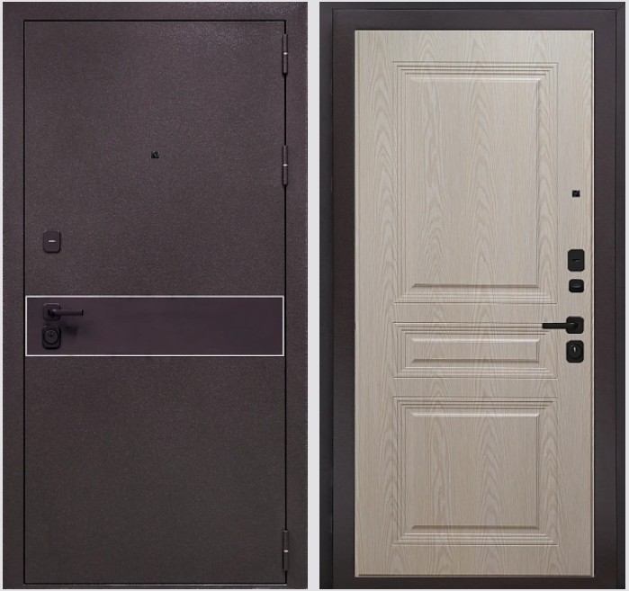 Комплектация: дверной глазок, ночная задвижка, фурнитура черная прямоугольная 17 серия, порог из нержавеющей стали, декоративные накладки с защитой от продувания, комплект ключей.
