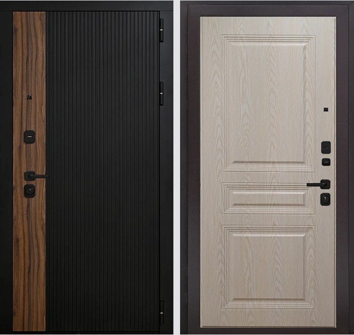 Внешняя отделка: комбинированная МДФ 10 мм ламинированная пленкой ПВХ «Черная шагрень»/ «Орех каньон коньяк»
