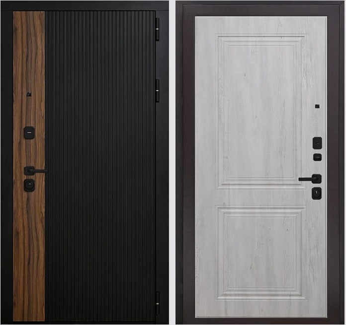 Внешняя отделка: комбинированная МДФ 10 мм ламинированная пленкой ПВХ «Черная шагрень»/ «Орех каньон коньяк»