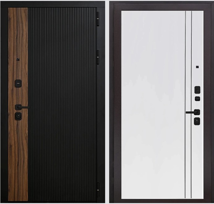 Внешняя отделка: комбинированная МДФ 10 мм ламинированная пленкой ПВХ «Черная шагрень»/ «Орех каньон коньяк»