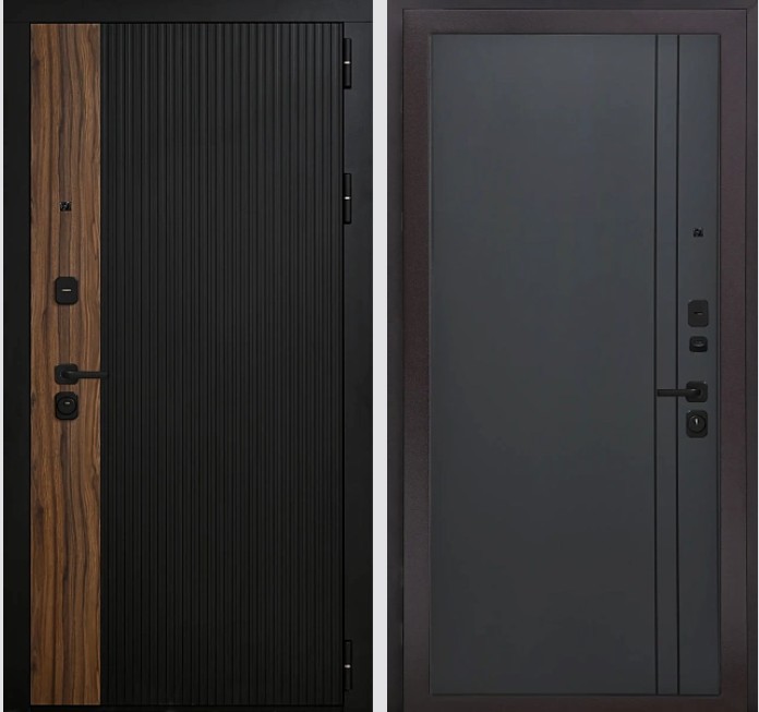 Внешняя отделка: комбинированная МДФ 10 мм ламинированная пленкой ПВХ «Черная шагрень»/ «Орех каньон коньяк»