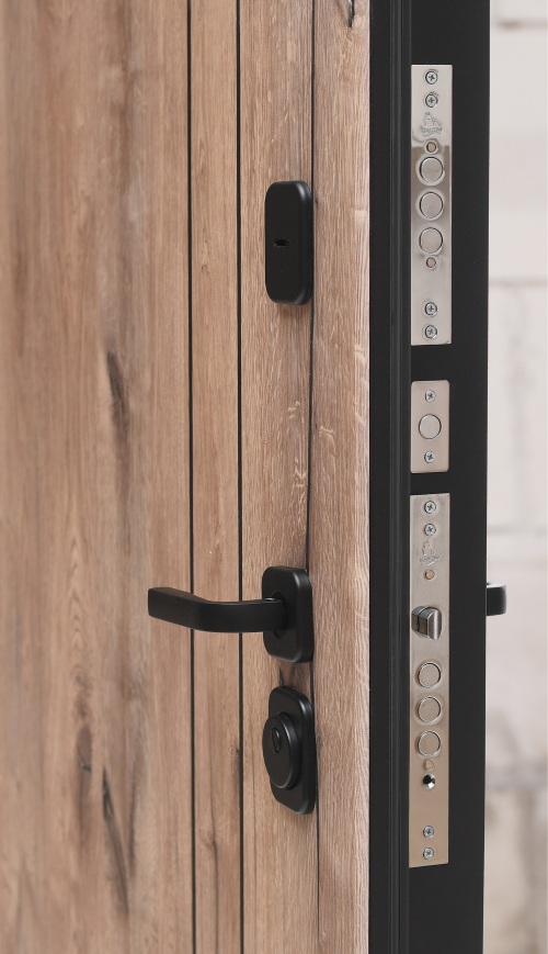Комплектация: дверной глазок, ночная задвижка, фурнитура черная прямоугольная 17 серия, декоративные накладки с защитой от продувания, порог из нержавеющей стали, комплект ключей.