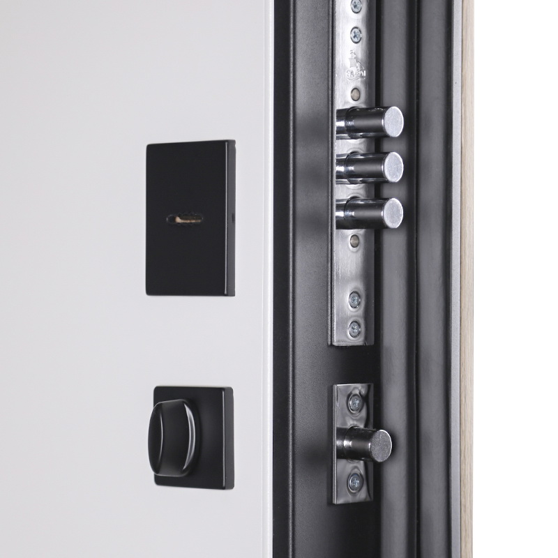 Дополнительно - Евроцилиндр К-В перфокарта. Броненакладка врезная. Штырь противосъемный (3 шт.). Порог из нержавеющей стали (цвет "хром").