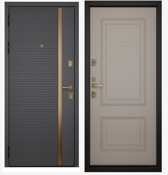 Входные двери Вандрафт Маяк графит /Верба капучино Молдинг: золото
